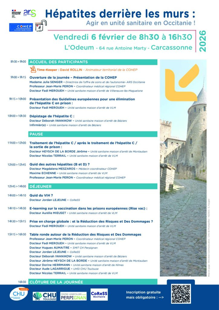 La Coordination Hépatites Occitanie (COHEP) organise une journée régionale dédiée à la prise en charge des hépatites virales en milieu pénitentiaire. Intitulée « Hépatites derrière les murs : agir en unité sanitaire en Occitanie », cette rencontre vise à favoriser les échanges entre professionnel·les et à renforcer les pratiques de soins au sein des établissements carcéraux.
